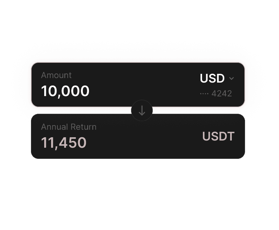 Decide how much to invest — your assets convert to USDT and start earning instantly.